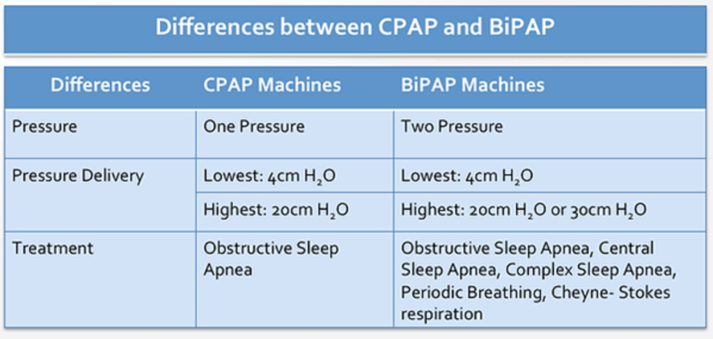 CPAP Systems provide one level of pressure to the patient’s upper airway throughout the night. This pressure will provide the stability necessary to prevent upper airway collapse during sleep BiPAP bi-level systems provide two levels of pressure to the patients throughout the night. A higher pressure (IPAP) is delivered on inhalation, while a lower pressure (EPAP) is delivered on exhalation.